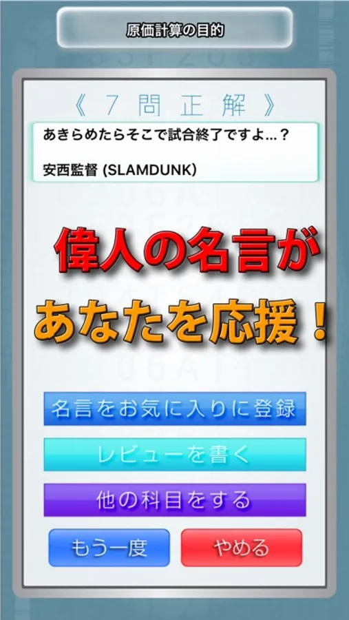 歴史上の人物、スポーツ選手、起業家、さらには漫画のキャラクターの名言が収録されていて、あなたを応援します。