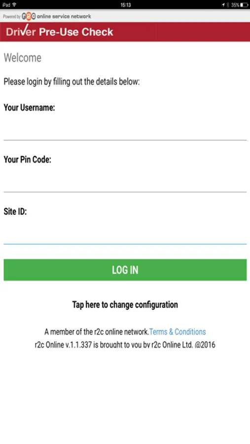 To use the Driver pre-use check application you need to be a customer of r2c Online, for further information email us at: info@r2conline.com to get set up.