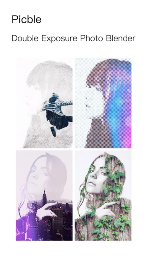 Picble is a Double Exposure Photo Blender Editor for making creative photo blending artworks. With a few taps you can blend and edit photos with blend modes, shape mask, filters, stickers or editing photo with fancy effects.