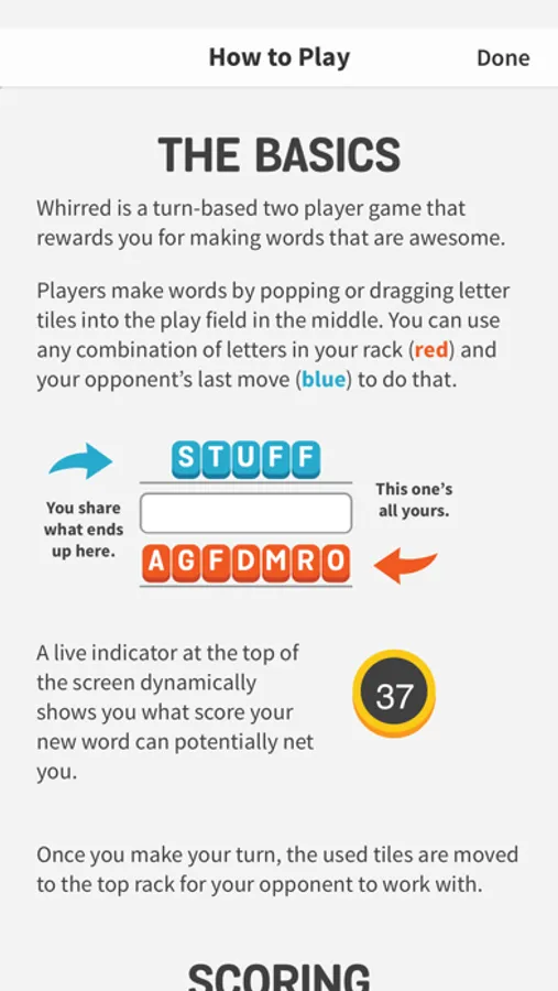 Whirred is an amazing new game where you compete with your friends to see who can make the best words! In Whirred, you get points for making the most awesome word out of your letters and the letters of the previously played word.