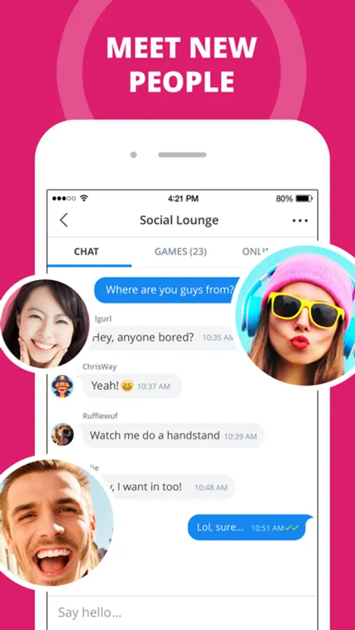 Plato is all about connecting you with your friends or meeting new people. Just upload a profile picture and get chatting. With 10 million+ people, you'll find your clique in no time.