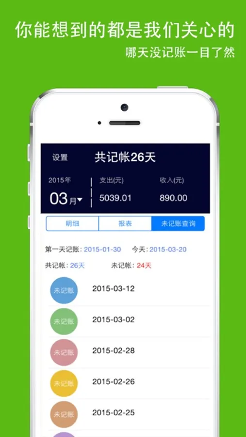 -未记帐查询:一键显示所有忘掉记帐的日子