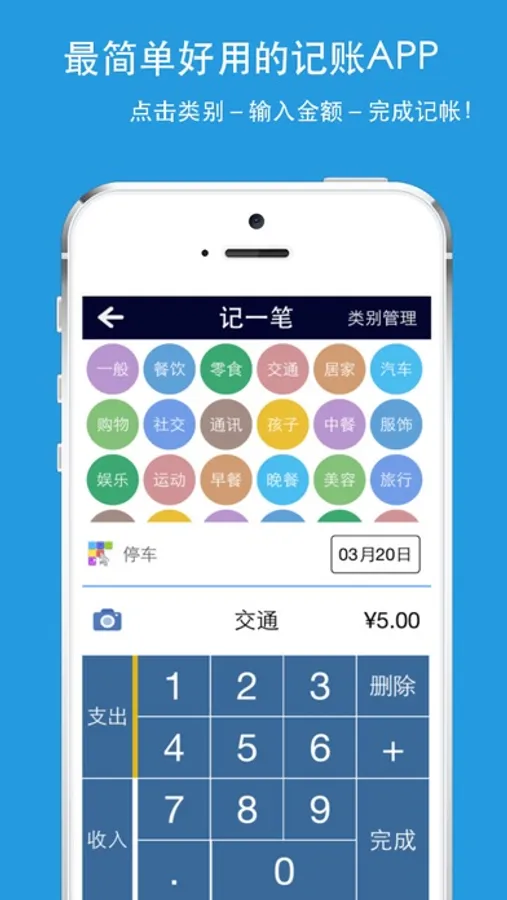 最好用的记帐App,点击类别-输入金额-完成记帐!