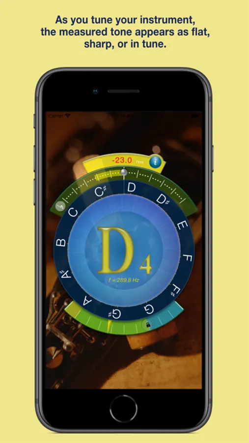 Whether you have a flute, saxophone, or a string instrument, all you have to do is use the built-in microphone to get started. Concert Pitch will detect the tone from your instrument and display the corresponding musical note with the exact measured frequency.