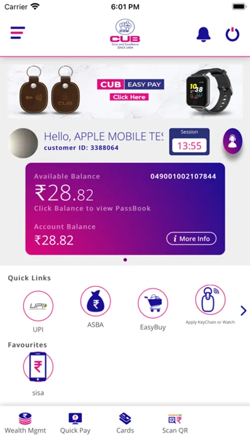 The look and feel of CUB m-PassBook is very similar to the traditional passbook, making its use comfortable for the users.