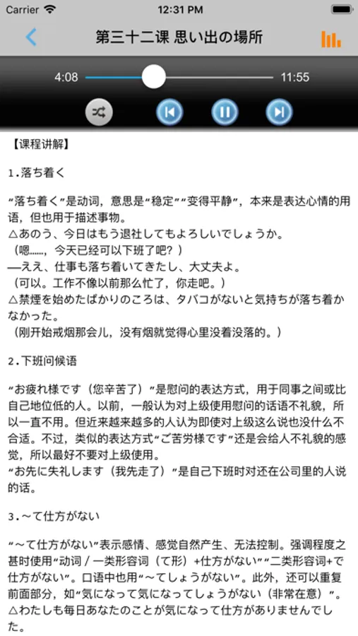 把《新版标准日本语》装进移动设备,出行学习不用背书,资源包单独下载,随时随地无流量、离线学习;