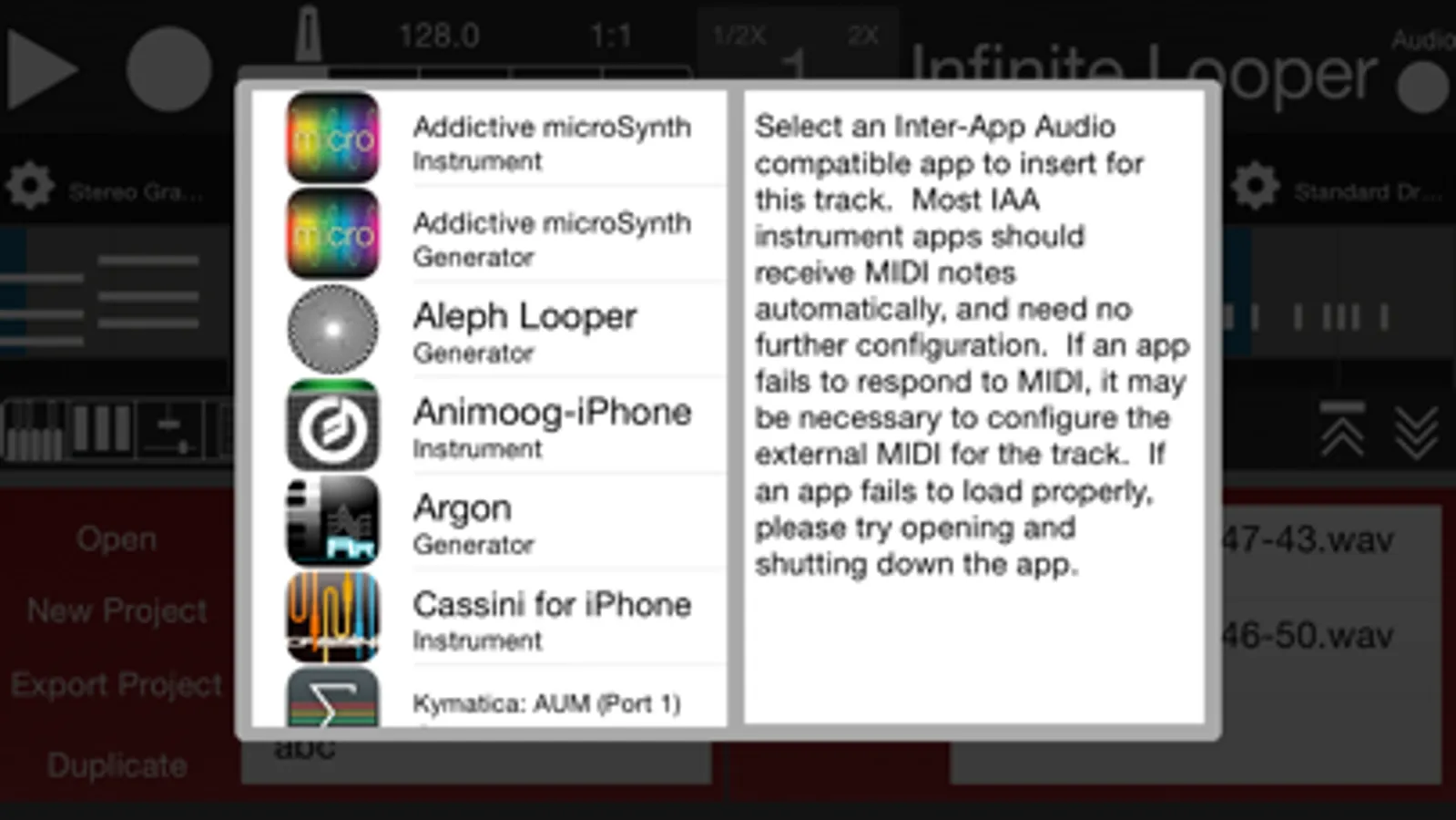 Infinite Looper can host IAA-compatible synth apps -- take advantage of the wide range of innovative synths.