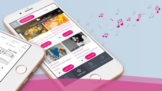 Get thousands of scores from beginner to advanced level. Play scores for solo piano with the possibility of practising one hand accompanied by a recording of the other hand or play in a duet or four-hands or accompanied by an orchestra! Our piano catalogue contains many repertoire classics and also jazz, pop and rock sheet music, film scores and world music.