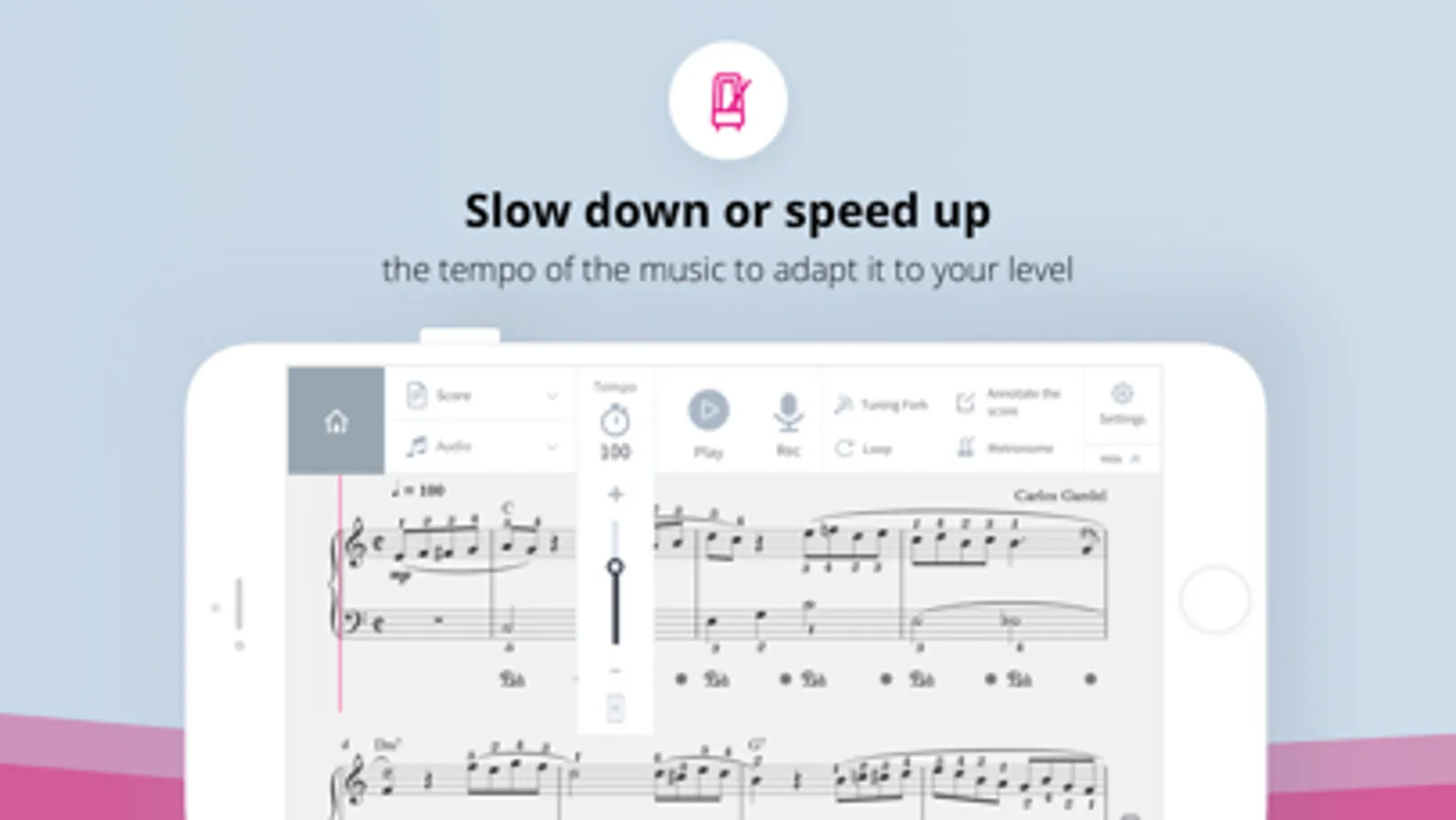 • Slow down or speed up the tempo of the music to adapt it to your level