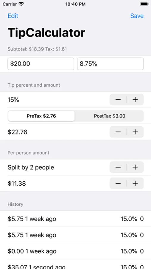 Tip Calculator and Bill Splitter iOS devices.