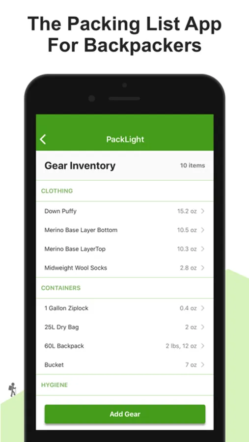 Add your gear inventory then use it to create weight-conscious packing lists for your trips. PackLight makes it easy to decide what to bring with you next time you head out.