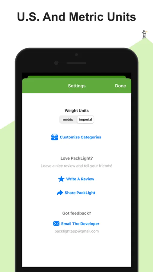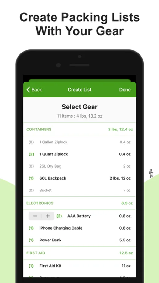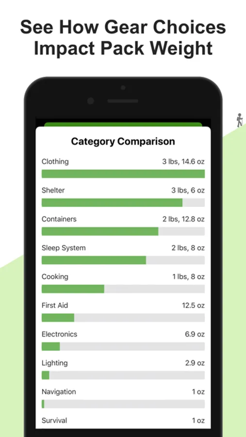 - Get real-time feedback on weight as you build a packing list (total weight and by category).