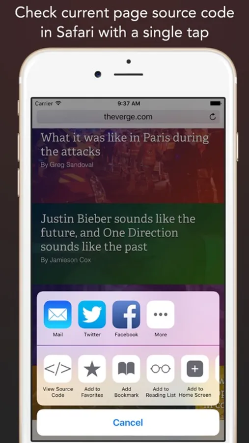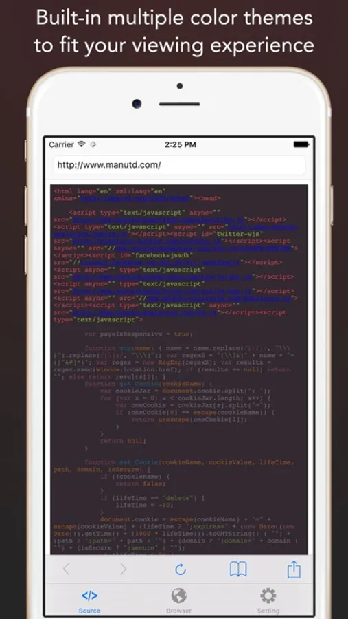 With built-in app extension, one tap to view the source code from Safari.