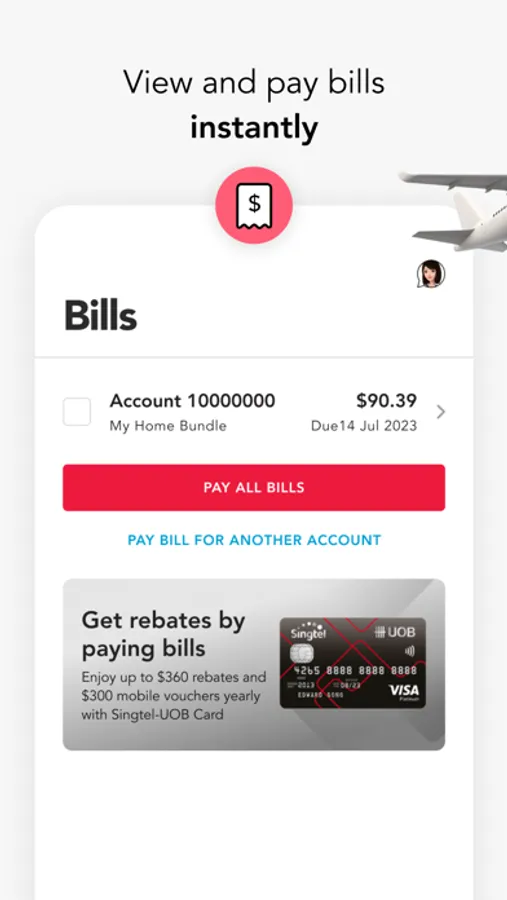 • Charge Singtel Prepaid hi!Card and Singtel Dash top-ups to your bill