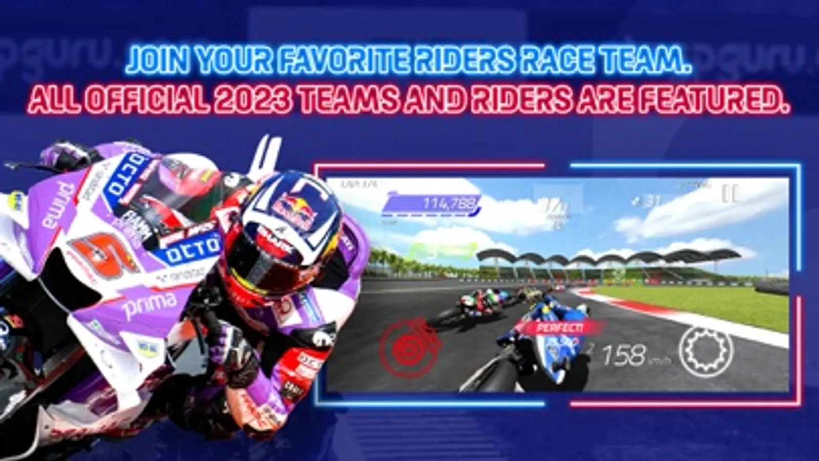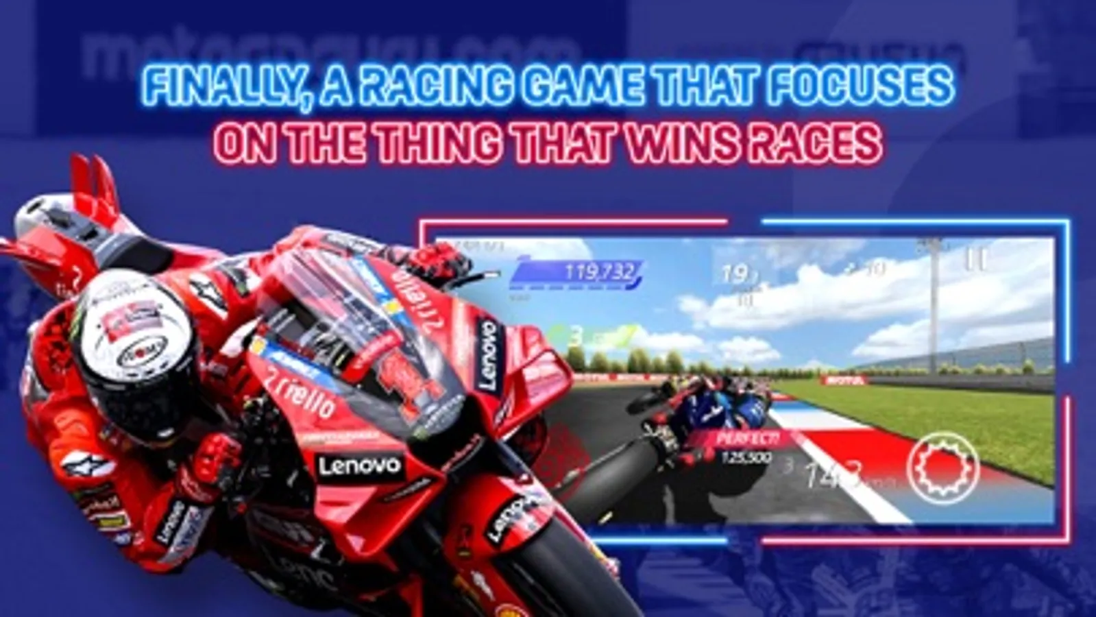 MotoGP 2023 Season Edition. Finally, a motorcycle racing game that keeps you on the track and focused on what wins races, TIMING! Timing on the brakes and timing on the throttle. Experience the intense racing action that is MotoGP. Race as your favorite rider and join them on the podium of the Fan World Championship or customize your own bike and challenge your friends with the highest scores.