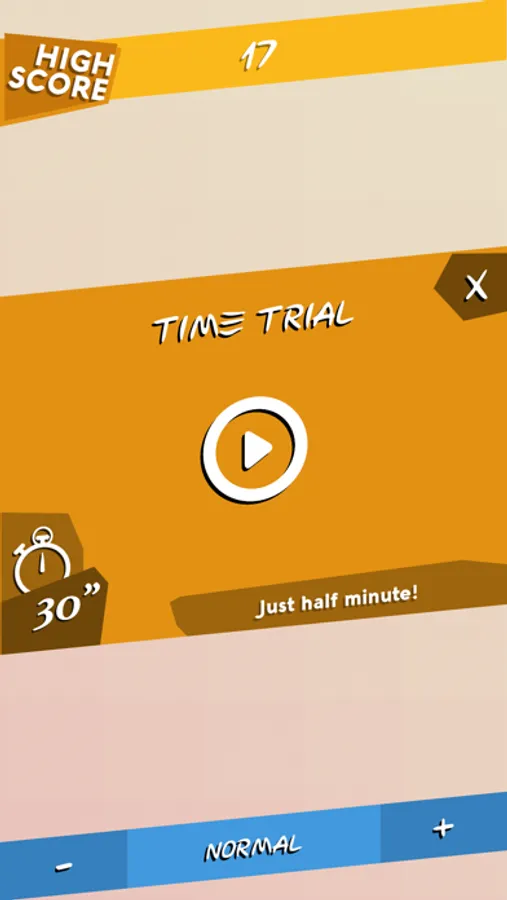 - TIME TRIAL: 30 seconds time limit. 2 mistakes at most. Let's see far you can go.
