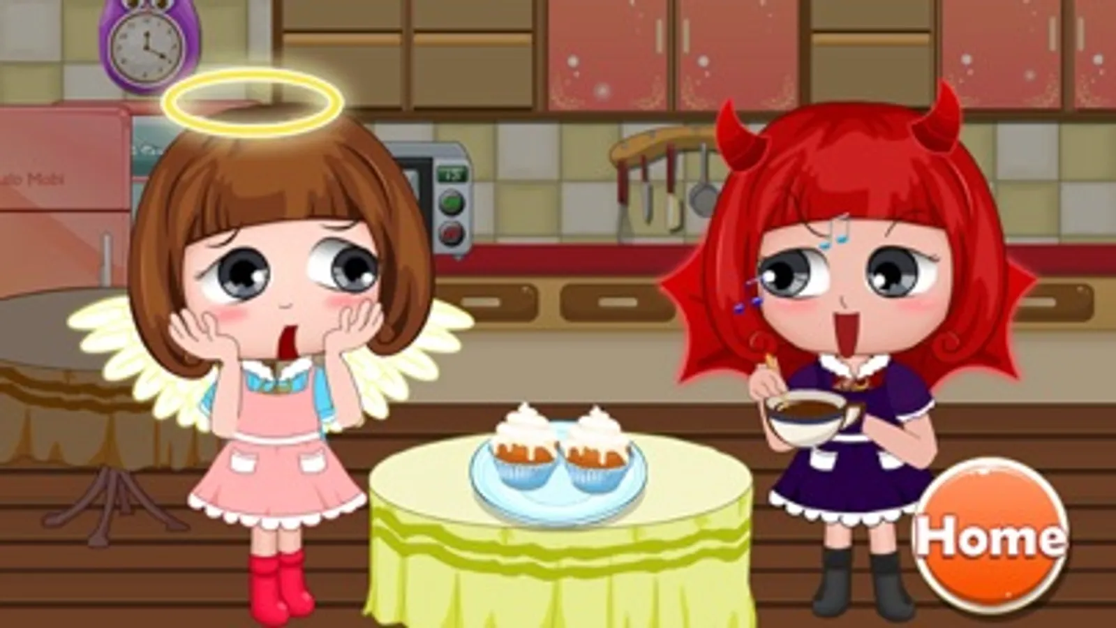 Little angel Bella then tell uncle Bakery that " our desserts had been bewitched, only those people with good mood can taste the Angel "series. People with poor mood may taste the Devil series and the Devil series will take away the bad feeling from the people. Uncle Bakery thoughtfully thought and calm down and try to eat the cake again. This time he feel the cake has suddenly become a very delicious cake!