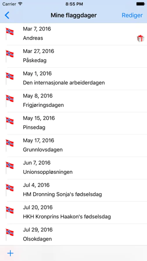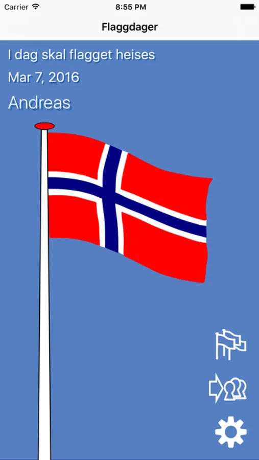 Med dette programmet får du en liste over norske flaggdager. Du setter dine egne datoer og velge hvilke dager du vil flasse. App'en hjelper deg å huske når flagget skal heises og når det skal heises ned. Du får en melding både når flagget skal være oppe og når det skal tas ned igjen.