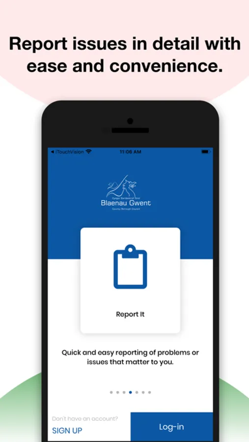 Blaenau Gwent app enables you to capture the details of an issue or incident that is then automatically submitted to the council.