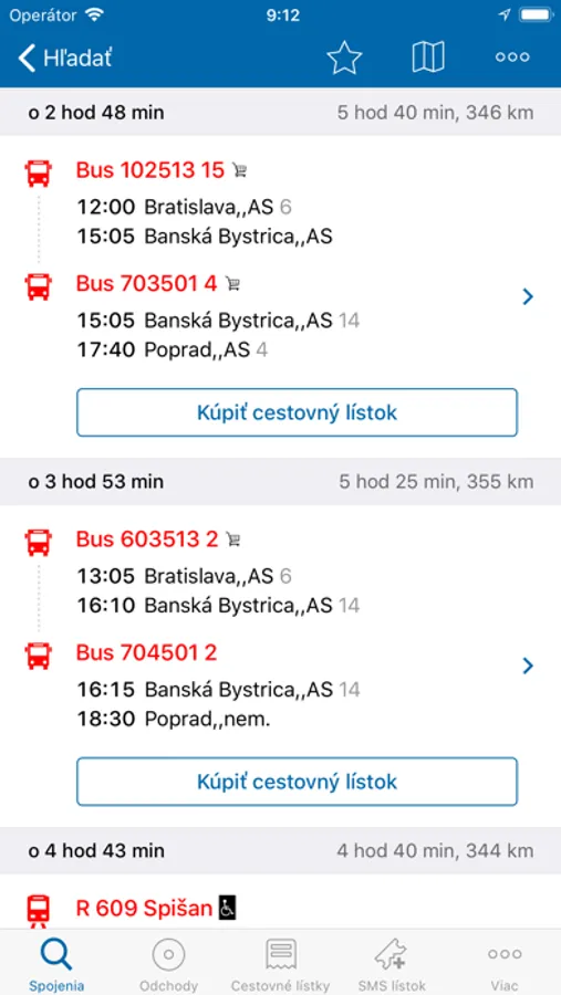 • šesť položiek off-line histórie hľadania, možnosť uloženia až 6 obľúbených spojení či sledovanie až 6 rôznych spojení v notifikačnej lište,