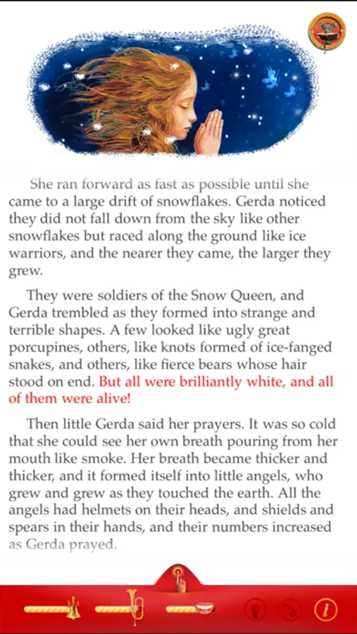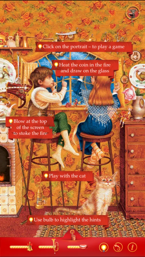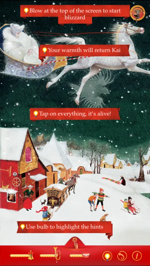 * Magic holiday atmosphere on the last page – tap the iPad top or blow for more snow, lit windows of the cathedral, hear Christmas organ!