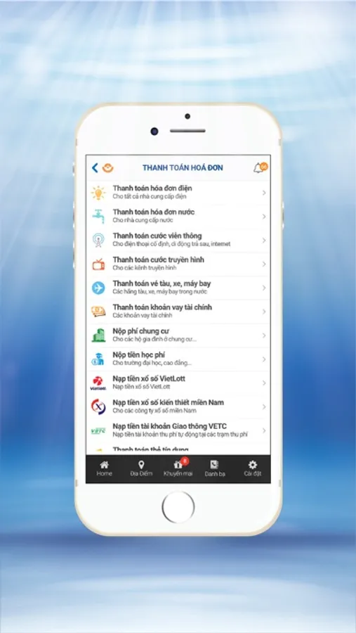 - Thanh toán hóa đơn Điện, Nước, Viễn thông, Truyền hình, nộp phí Chung cư, nộp Học phí, thanh toán cước taxi, ủy thác chuyển tiền, nhắc lịch thanh toán… dễ dàng.