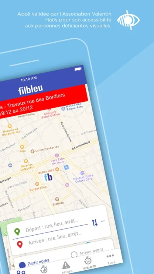 The Fil Bleu mobile application, validated by the Valentin Haüy Association, is adapted to the needs of visually impaired people.
