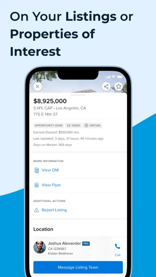- Easily access offering memorandums or flyers for every listing and browse through photos, videos, and floor plans.