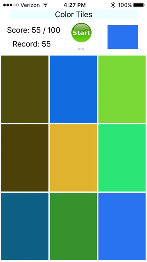 This game allows you to test how sensitive you are towards the colors. Within certain period (such one seconds), you are asked to choose a color among 9 color tiles to match the sample color. All the colors are generated randomly. The update frequency of your color tiles changes depending on your game performance. The better your performance, the faster the color tiles changes.