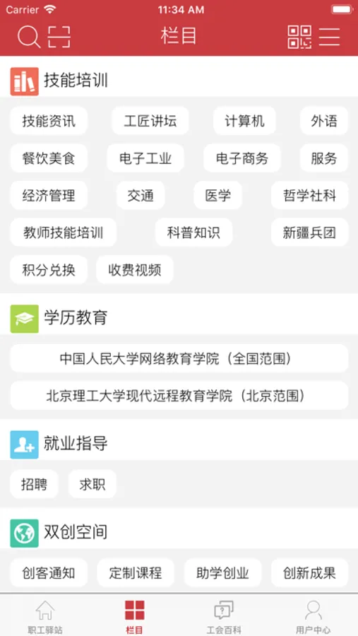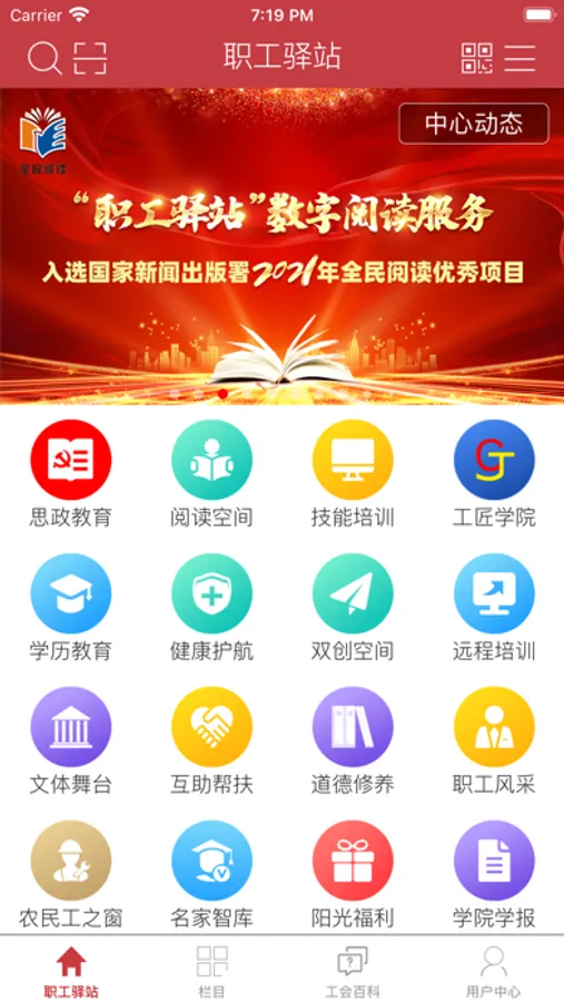 为职工群众提供一系列技能培训、学历教育、心理辅导、素质讲堂、文化活动等相关课程内容,为职工群众提供一系列教育、生活、便民服务,为职工群众搭建工作生活交流互动平台。