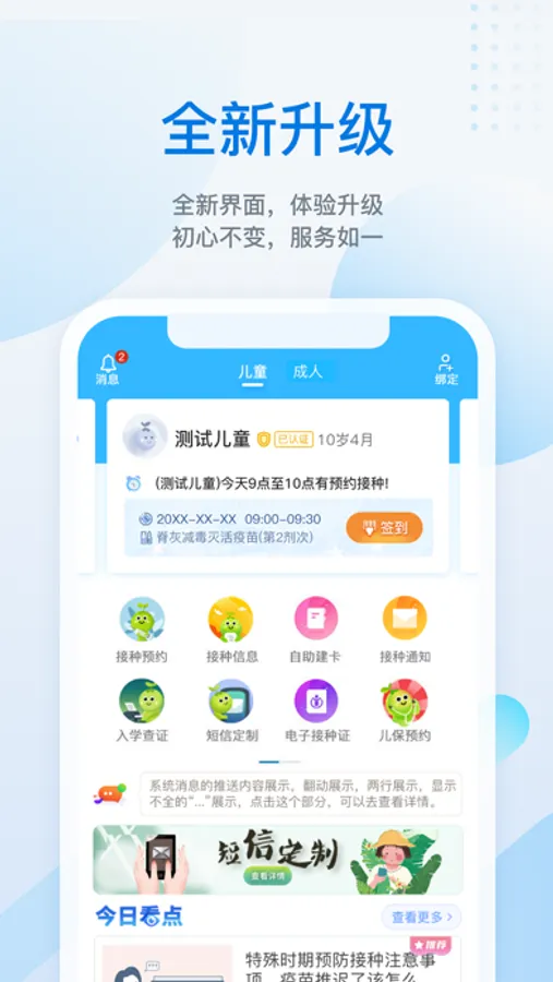绑定受种者——支持绑定多个受种者,绑定后可享受线上预约、查询等服务;