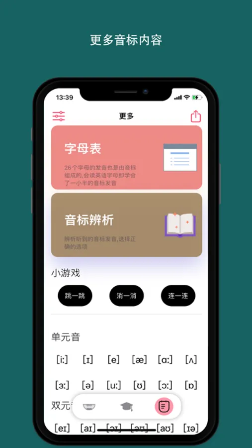 3. 游戏小单元助力学习,不枯燥(音标消消看,跳一跳,打音标等)。