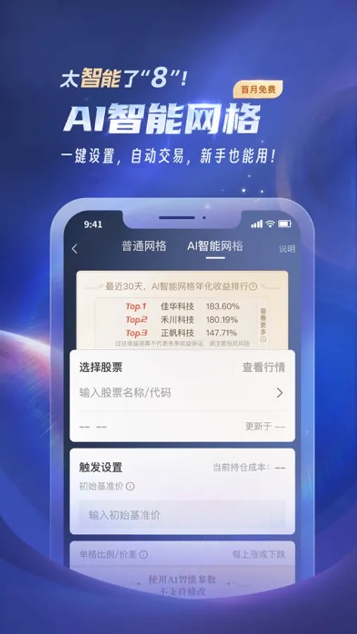 港股通、智能盯盘闪电下单、秒速查看分时、委托与持仓、新股申购一键触达