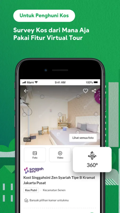 - Virtual Tour: Don't have time for a survey? We’ve got you covered! Save your time and energy with Mamikos Virtual Tour which allows you to tour chosen kos just like if you were actually there. No more offline survey hassle.