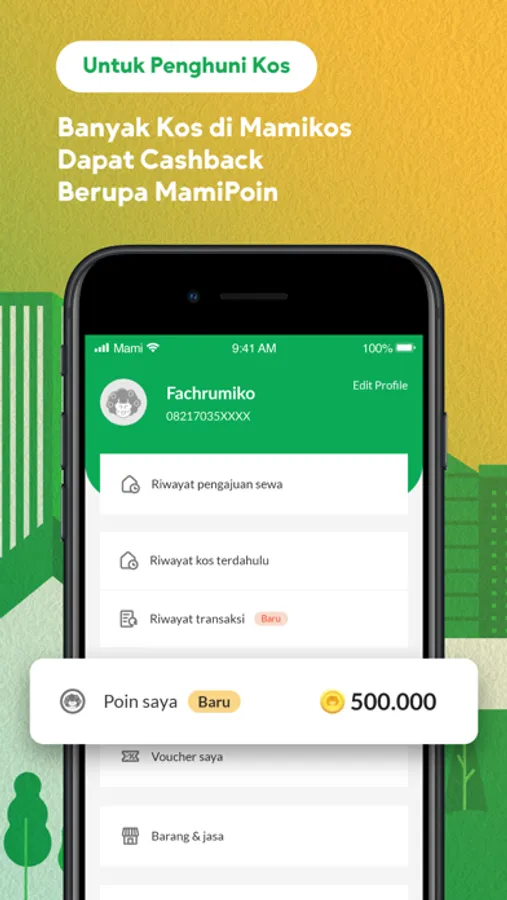 - MamiPoin: Pay your rent via Mamikos and get cashback in the form of MamiPoin! Collect MamiPoin as much as you can and use it as your additional discounts in your upcoming kos bills. 1 MamiPoin = Rp1!