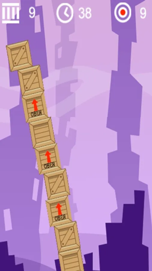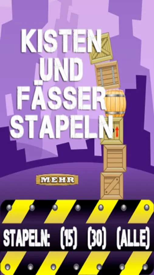 Stapel die Holz Kisten und Fässer zu einem großen Turm. Das Spiel hat 3 Einstellungen: