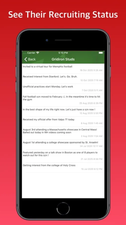 Fans can show their support for recruits by becoming their fan, adding your favorite schools logo to their profile and message to players. You can also get the latest news on recruits straight from the source. College football coaches can stay up to date on potential recruits by following them on this app.