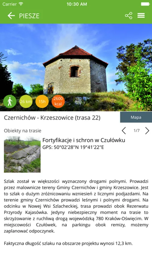 Aplikacja wykorzystuje technologię GPS, pokazując pozycję użytkownika, lokalizację obiektów oraz przebieg szlaków. Moduł audio pozwala wysłuchać opowieści o wybranych miejscach (funkcja dostępna tylko w języku polskim). Z myślą o licznie odwiedzających Małopolskę turystach zagranicznych projekt powstał w aż czterech językach: polskim, angielskim, niemieckim i francuskim.
