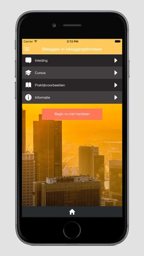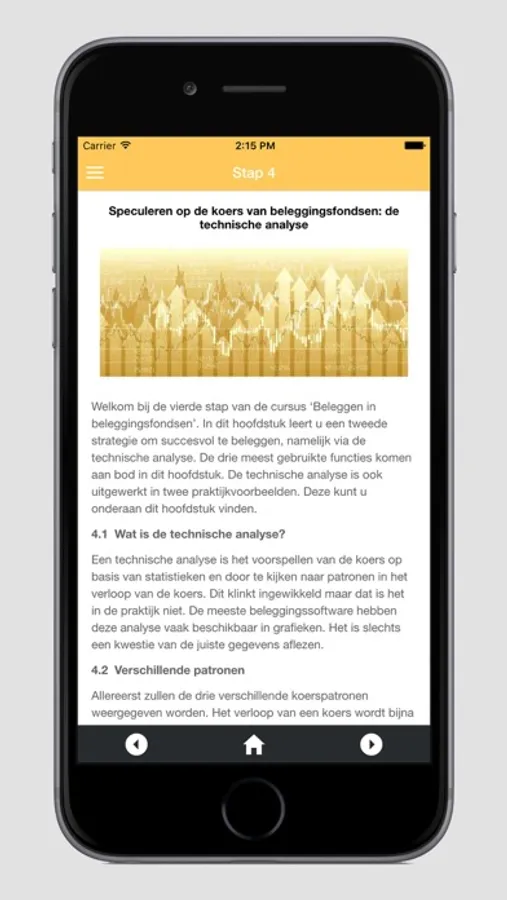 Zelf leren beleggen via uw smartphone of tablet? Download dan nu de cursus ‘Beleggen in beleggingsfondsen’. In deze gratis cursus kunt u zowel via uw smartphone als tablet in 30 minuten alles leren over online beleggen in beleggingsfondsen en hoe u de koers van aandelen kunt voorspellen. Elk onderdeel van de applicatie heeft een belangrijke taak. Door de cursus heen leert u alle basiskennis die nodig is voor online beleggen in beleggingsfondsen.