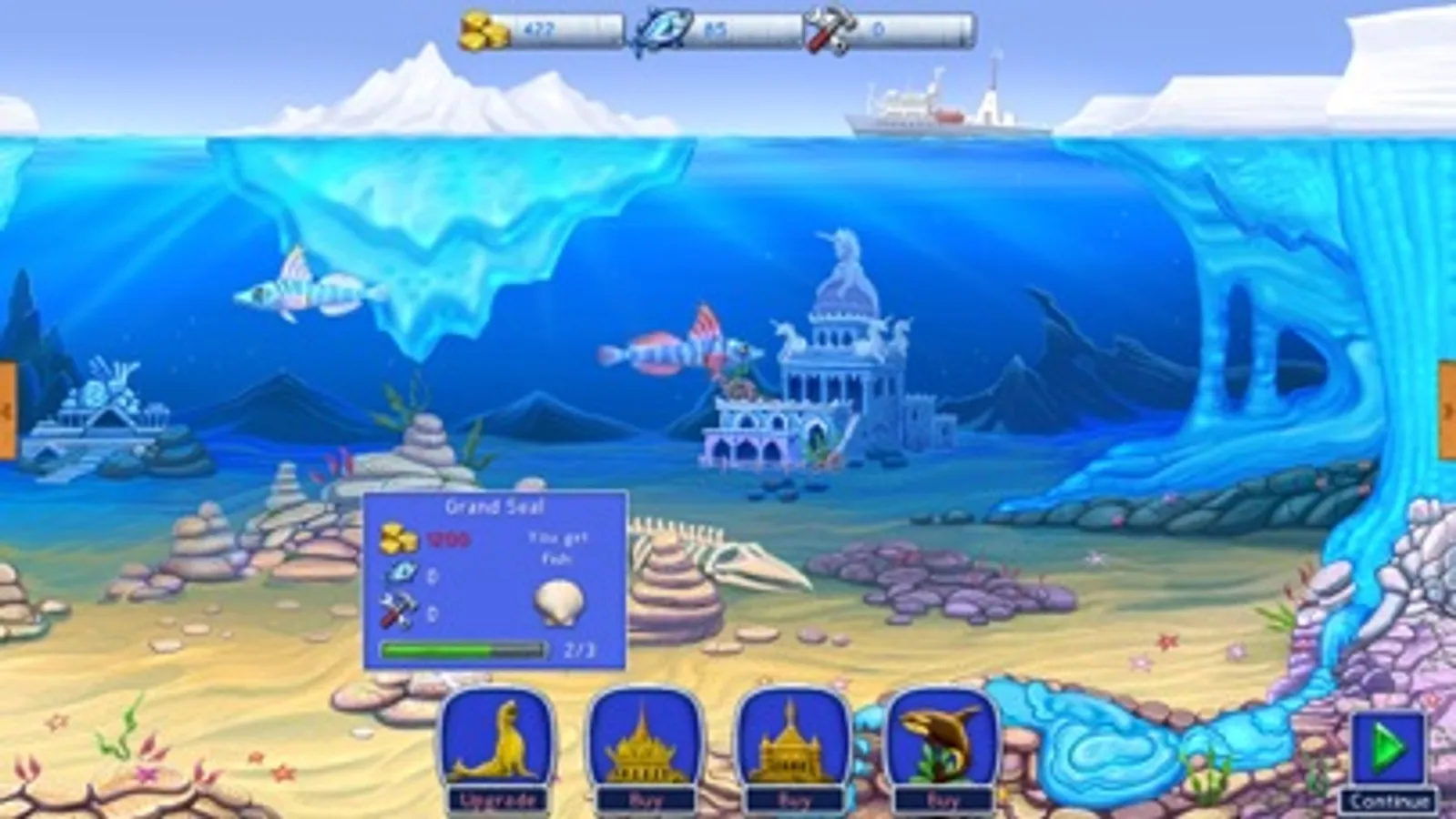 - Ancient civilization: you collect resources by playing match-3 levels, which help you rebuild the underwater town.
