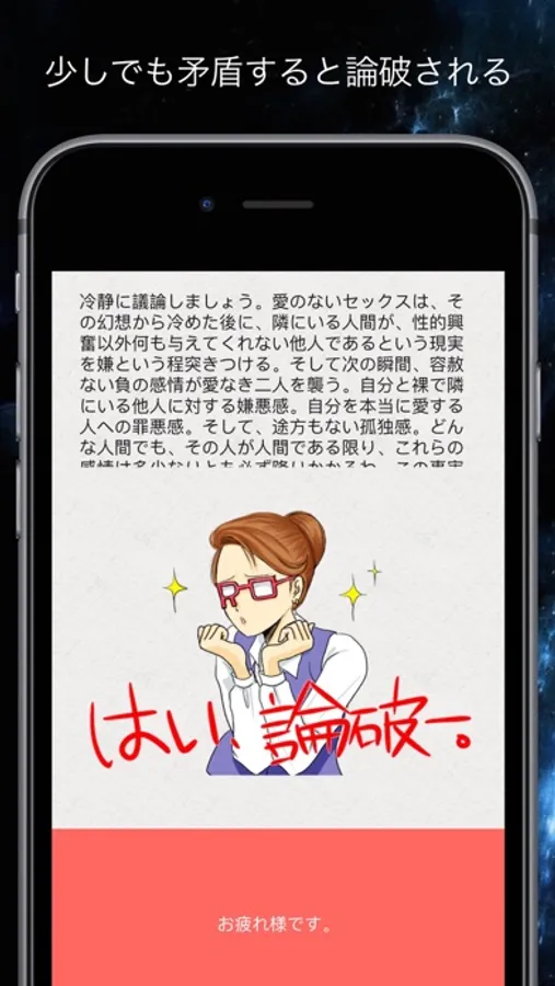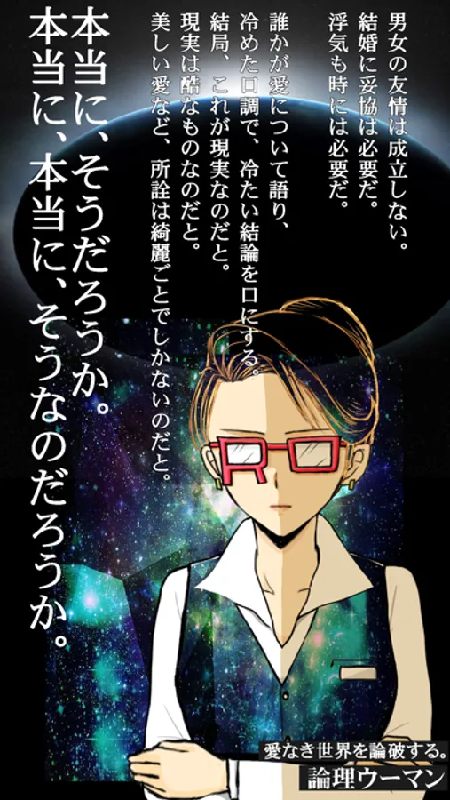 そこで登場するのが、論理ウーマンです。美しい愛と崩れることの知らない論理性を合わせ持った彼女を論破しましょう。