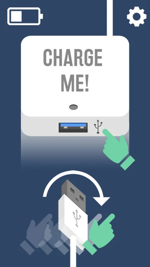 Do not ever guess the right way of the USB cable? This is the game for you! Match the correct side of USB plug with the socket to fully charge your device! Be fast or your device will turn off!