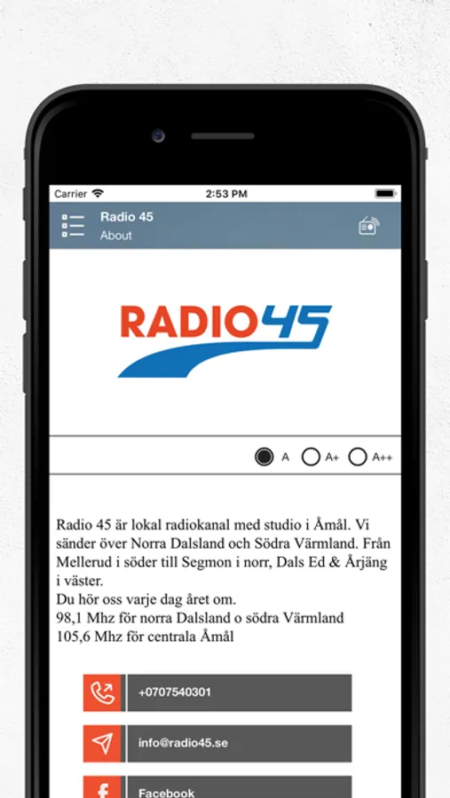 Radio 45 sänder lokalt i Åmål och kan höras i södra Värmland och Norra Dalsland.