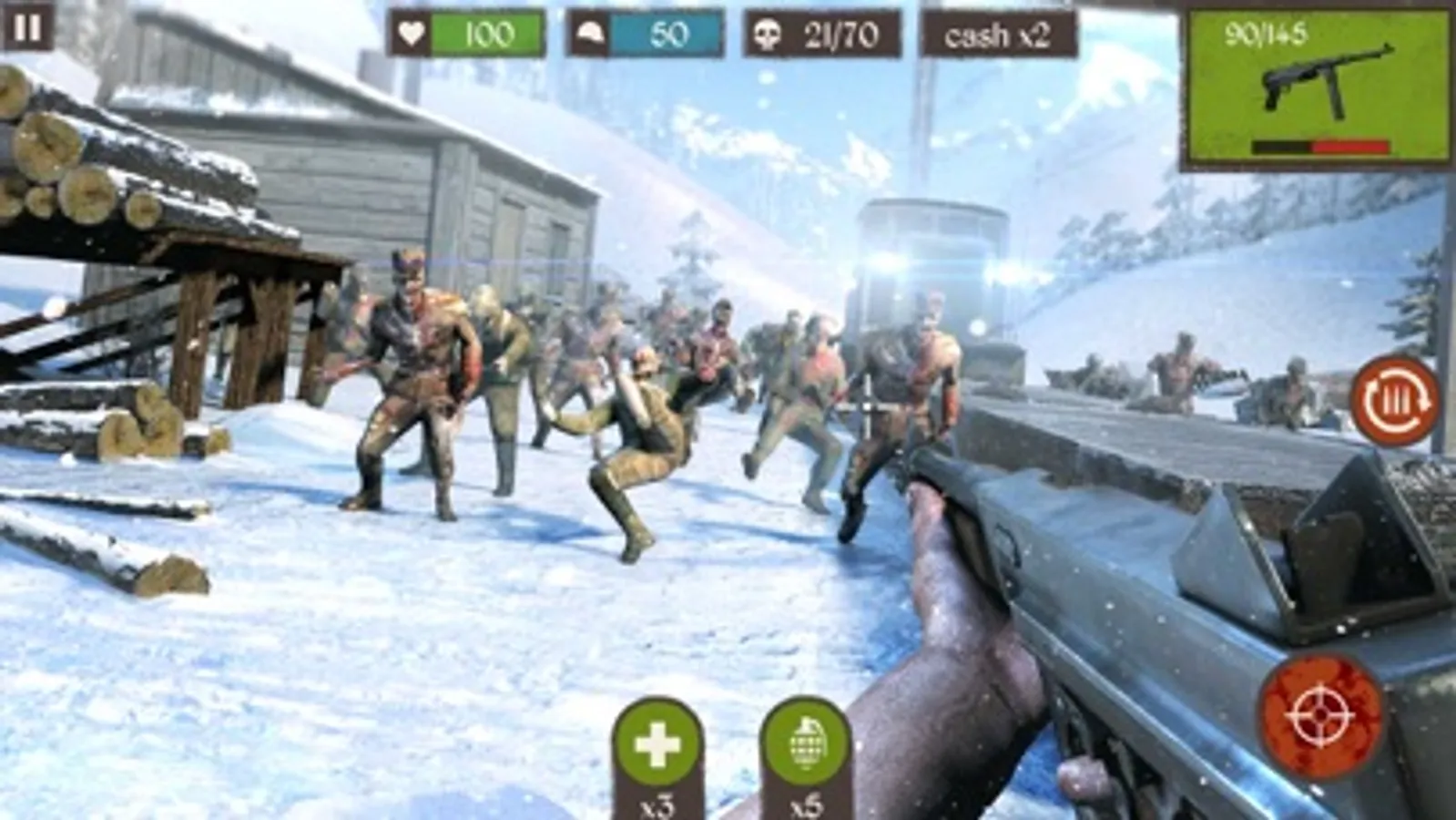 Travel on a battle train and protect yourself from an endless onslaught of zombie enemies. Unlock original and rewarding guns to handle more powerful types of foes. Renew your health with first-aid kits and decimate your enemies with grenades.