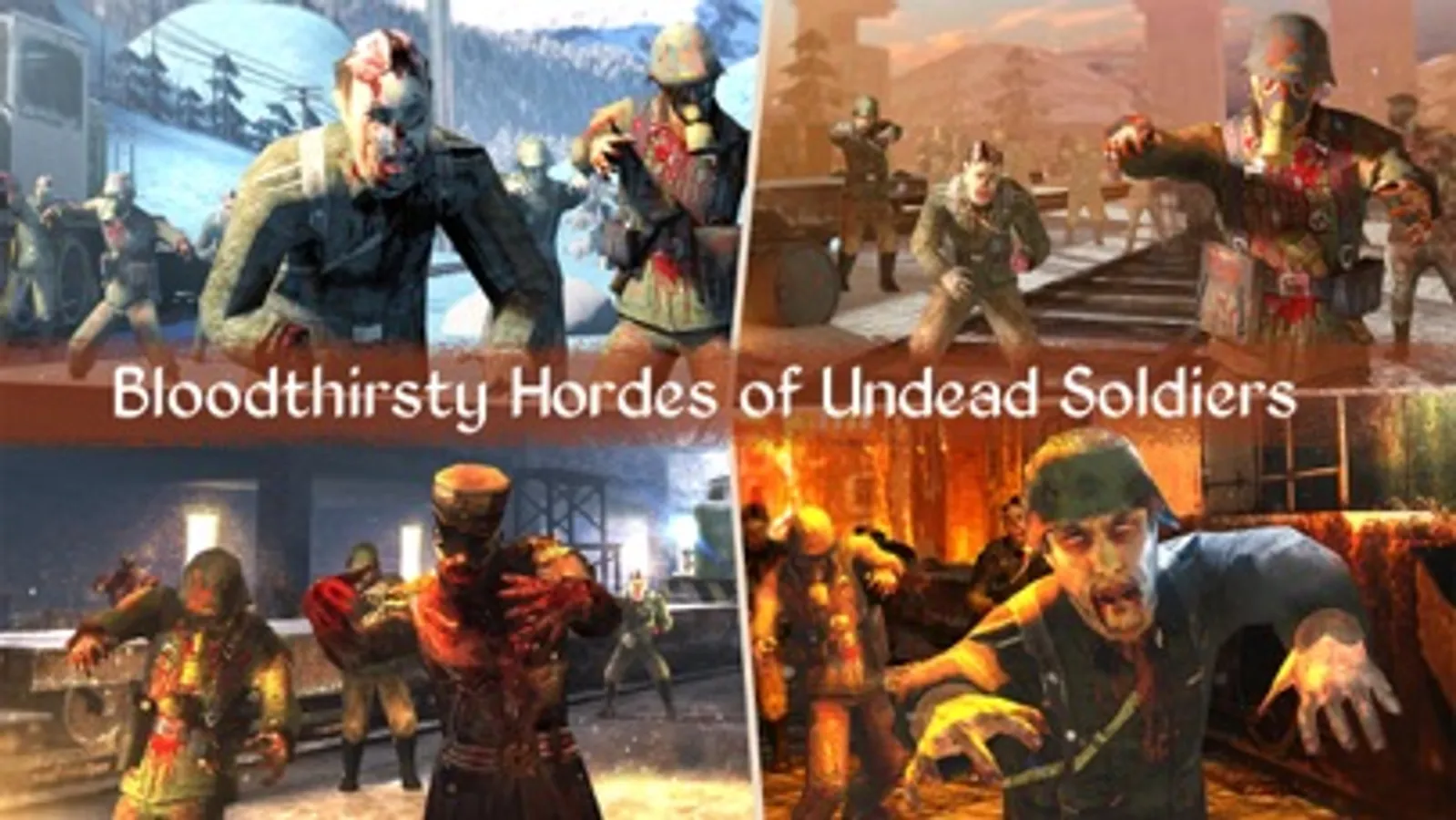 - Shoot your way through zombie filled battlefields