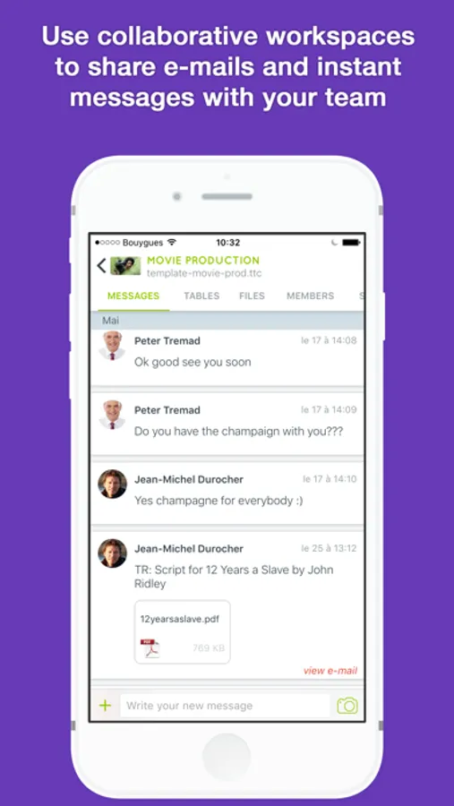 You can then open your books on your mobile phone and start sharing messages, write notes, access important documents or record photos. Each book is private by default (you can write to yourself), but of course you can invite the people of your choice (customers, colleagues, partners).