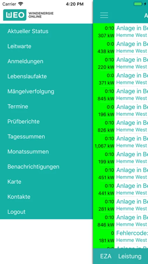 Die aus den Anlagen abgerufenen Produktions- und Messwerte werden in einem einheitlichen Format importiert und archiviert. In der WEO-LEITWARTE analysieren und bewerten Sie aufgetretene Ereignisse und in der WEO-LEBENSLAUFAKTE wird alles dokumentiert.