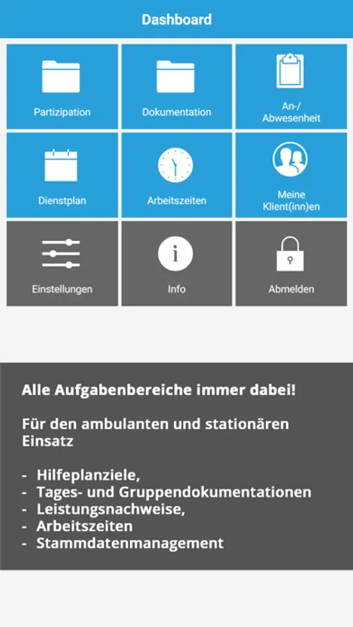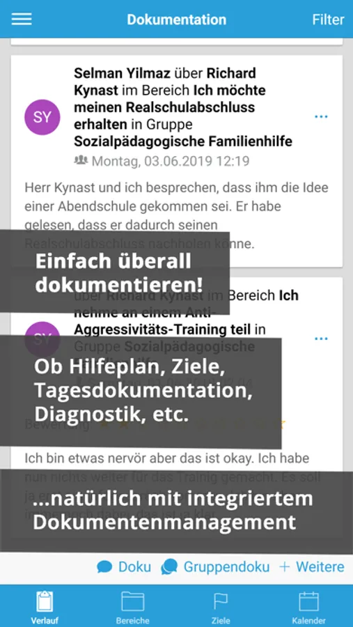 Die vielfältigen Dokumentationsmöglichkeiten sind insbesondere für die ambulante und stationäre Arbeit entwickelt worden. Wir haben uns mit den Problemlagen vieler Einrichtungen auseinandergesetzt und konsequent an einer Verbesserung der Situation gearbeitet.
