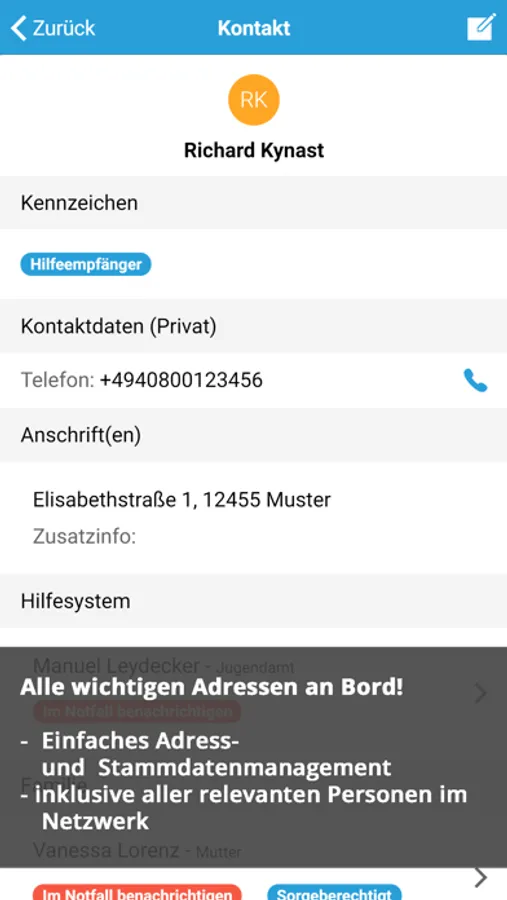 Die umfassende Adressverwaltung ist für den ambulanten und stationären Bereich eine große Erleichterung. Das Managen von Telefonnummern etc. ist häufig zeitaufwändig. Es ist schwer, die Daten auf dem aktuellen Stand zu halten.