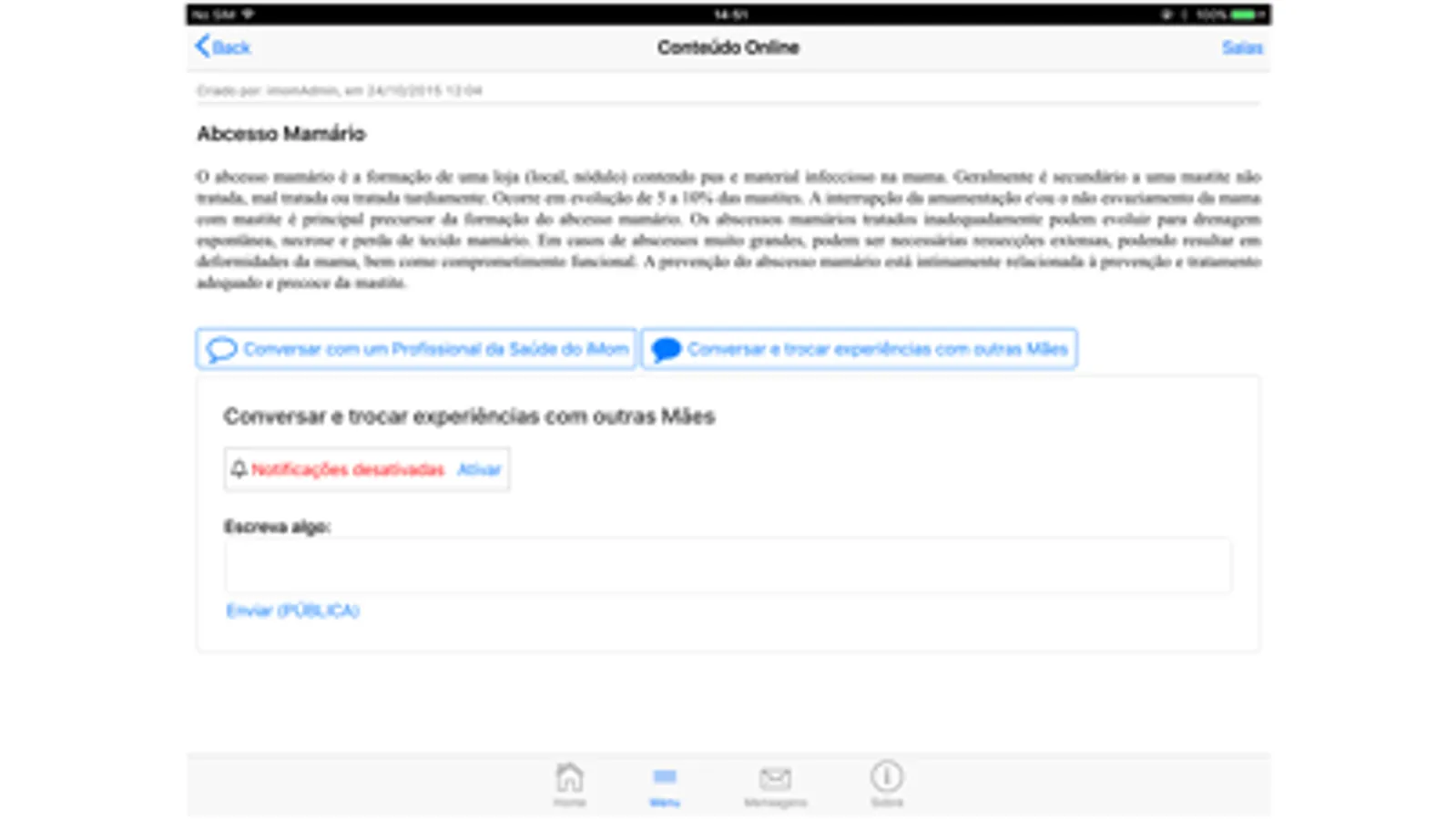 Aplicativo para troca de informações sobre Aleitamento Materno.